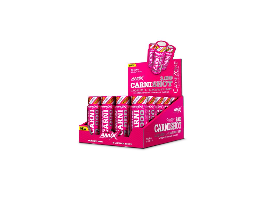 Amix™ CarniShot 3000 je praktický tekutý doplněk stravy ve formě ready-to-drink shotů s vysokým obsahem L-karnitinu. Ten je doplněn taurinem a vitamínem B6, takže se hodí zejména v období redukce hmotnosti, zvýšené fyzické aktivity nebo když chceš podpořit aktivní životní styl. Díky tekuté formě se snadno užívá, rychle se vstřebává a není potřeba nic míchat ani zapíjet.