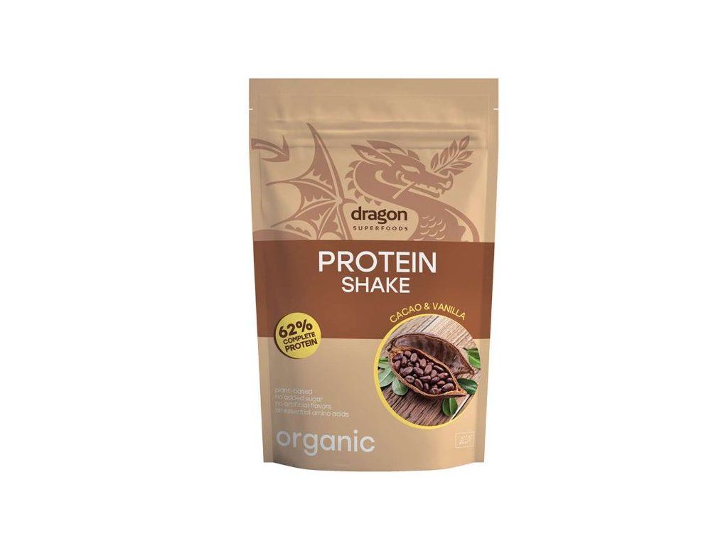 Dragon Protein SHAKE Kakao–Vanilka je lahodný rostlinný protein bez umělých příchutí, barviv a sladidel. Obsahuje přirozené spektrum esenciálních aminokyselin a je přirozeně bez lepku.