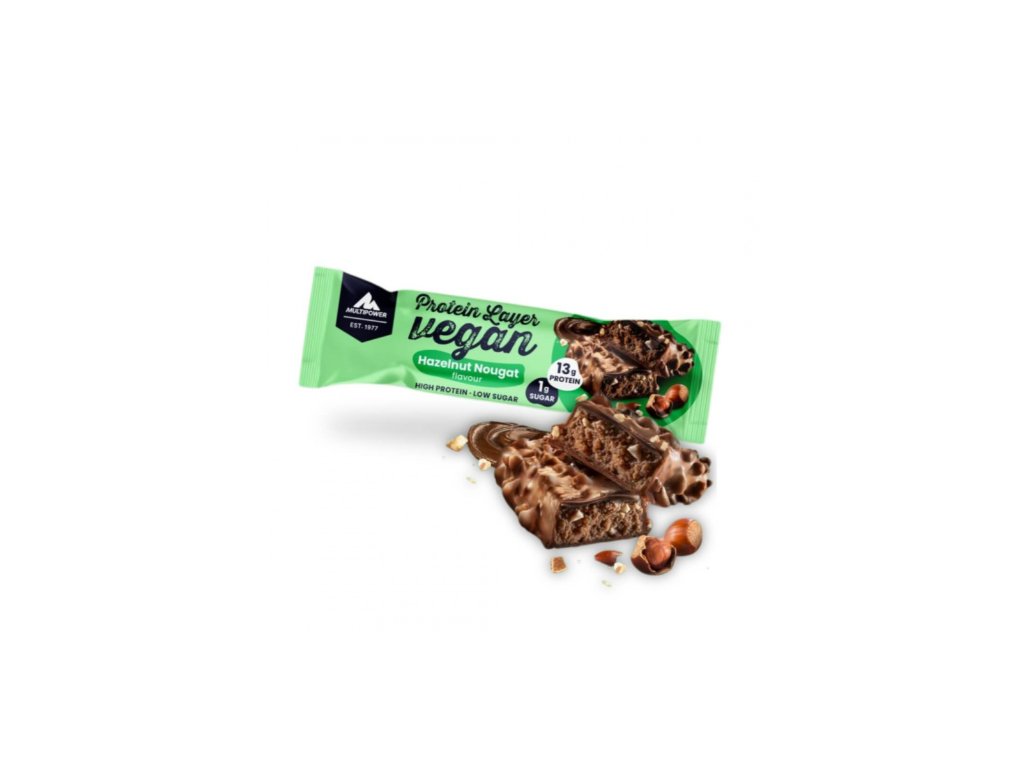 Layer Vegan Proteinová tyčinka 55 g je vícevrstvá proteinová svačina s čistě rostlinným složením. Kombinuje hrachový, rýžový a sójový protein, díky čemuž nabízí vyvážený aminokyselinový profil a 24 % bílkovin při velmi nízkém obsahu cukru.