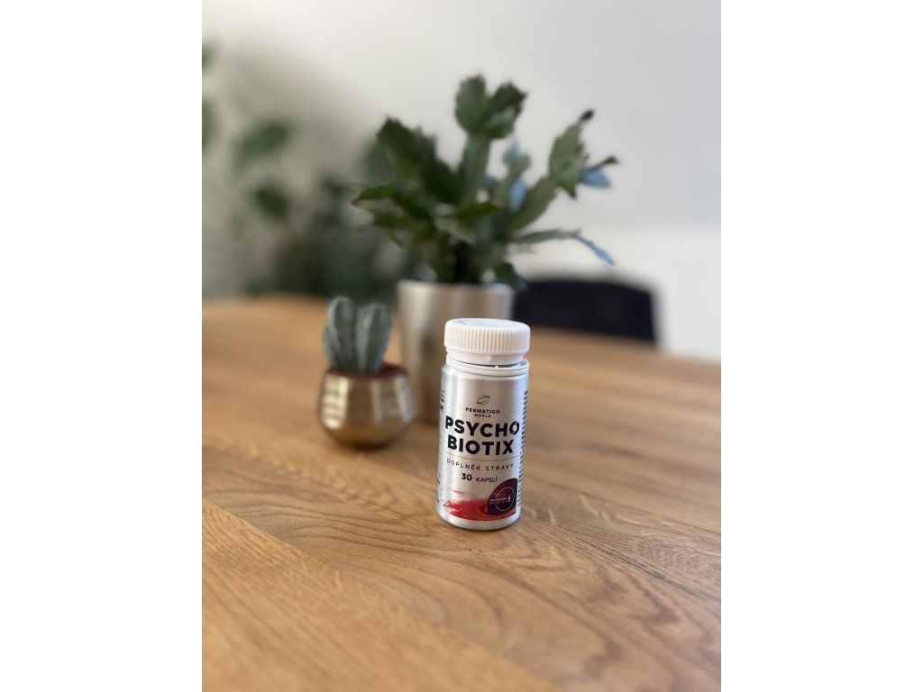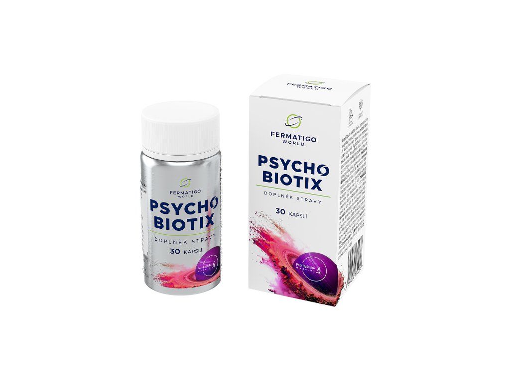 PSYCHOBIOTIX je prémiový doplněk stravy zaměřený na podporu rovnováhy mezi střevním mikrobiomem a nervovým systémem. Obsahuje kombinaci 5 kmenů psychobiotik ve formě biofilmu doplněnou o fermentovanou GABA, fermentovanou ashwagandhu a vybrané rostlinné extrakty.